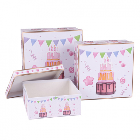 Коробка квадрат Вкусный торт 22*22*10см белый