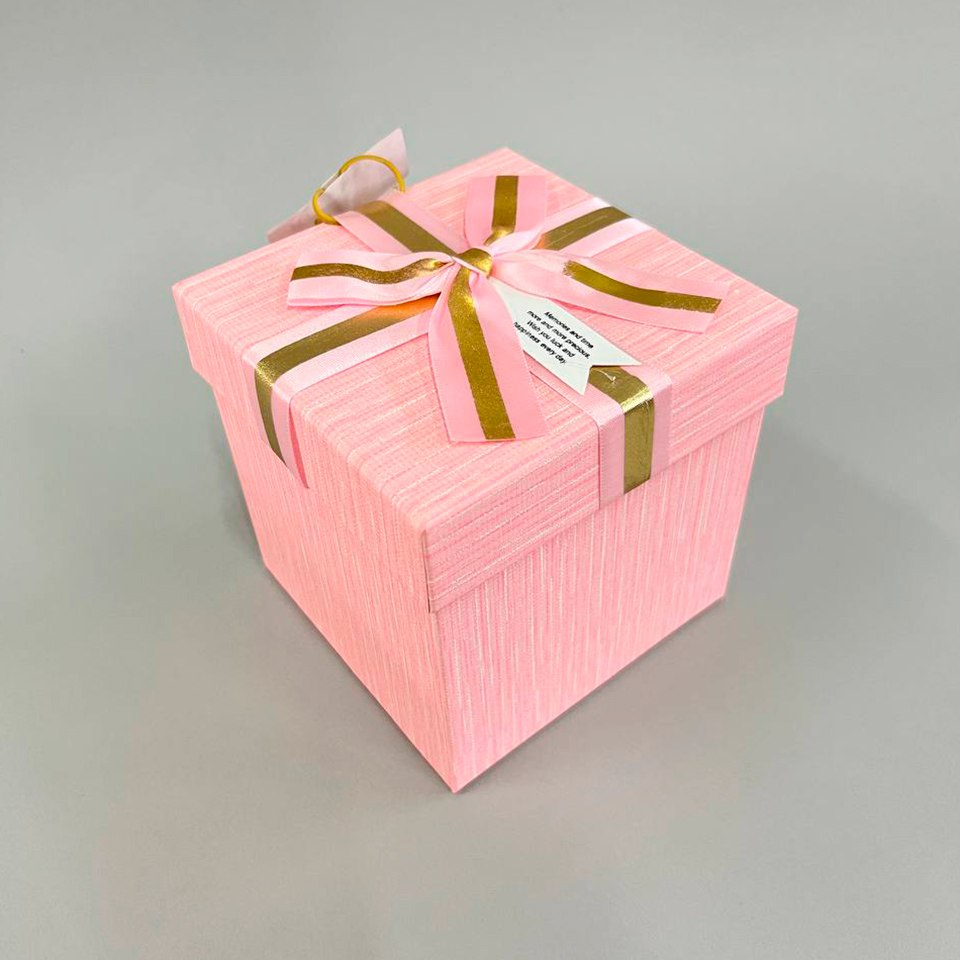 Коробка подарочная 13*13*13см Золотая полоса розовый