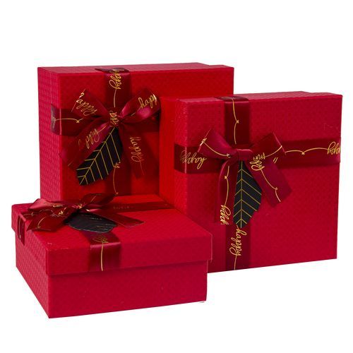 Коробка подарочная "Квадрат" с бантом 17*17*8см красный