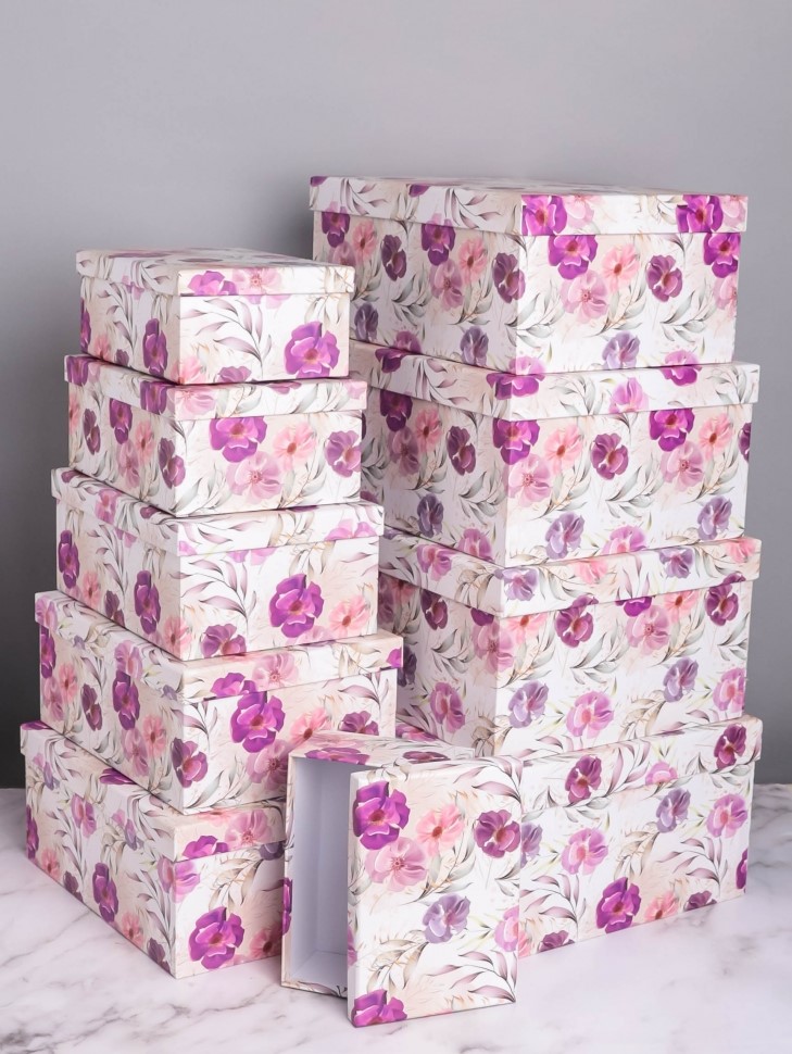 Коробка подарочная Прямоугольник 29х22х12.5см сиреневый микс