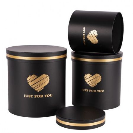 Коробка шляпная Тубус с Сердцем d20*h20см черный