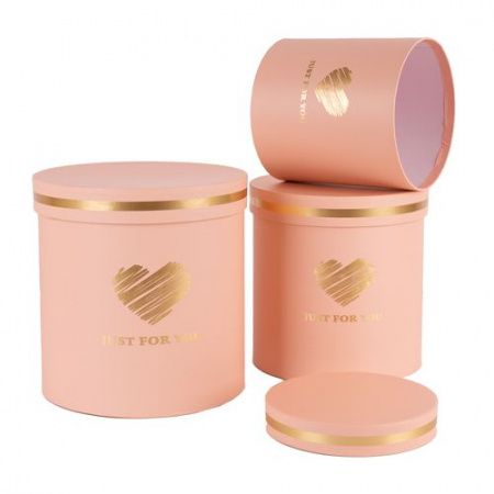 Коробка шляпная Тубус с Сердцем d20*h20см розовый