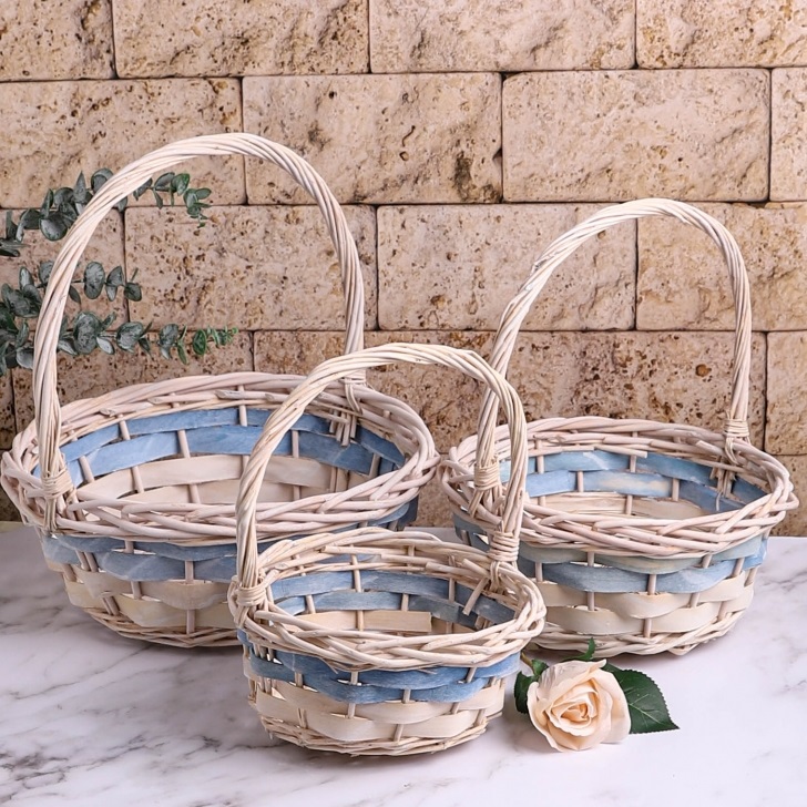 Корзина (ива) d21*h19*hh27см круг белый голубой