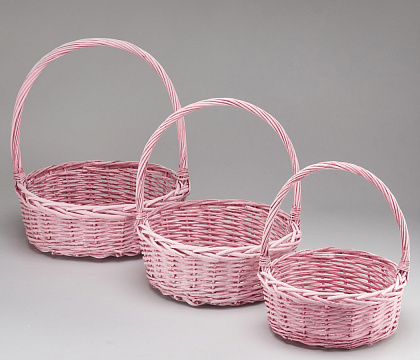 Корзина (ива) d33*h13*hh38см круг розовый