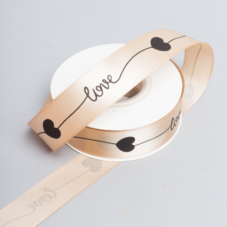 Лента атласная с рисунком 25мм*25ярд Love капучино