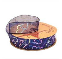 Лента органза 25мм*10ярд Перламутровые сердца синий