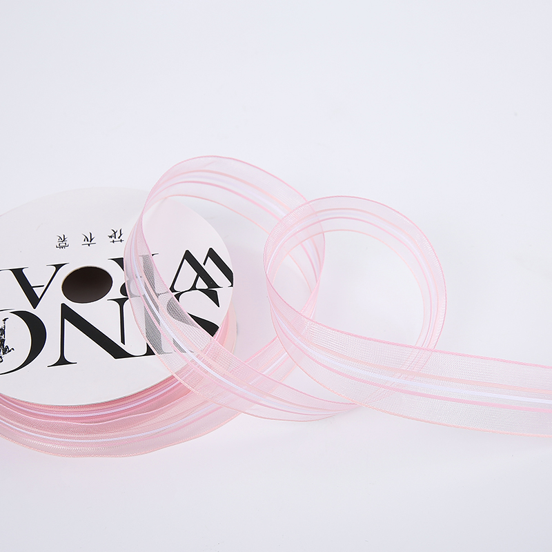 Лента органза 25мм*20ярд Strip розовый