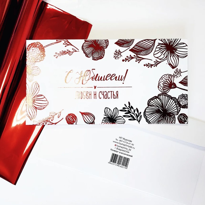 Конверт для денег "С Юбилеем!" 10*19см, фольгированный