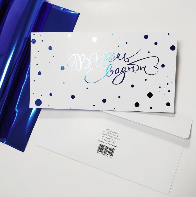 Конверт для денег  "В День Свадьбы", 10*19см, фольгированный