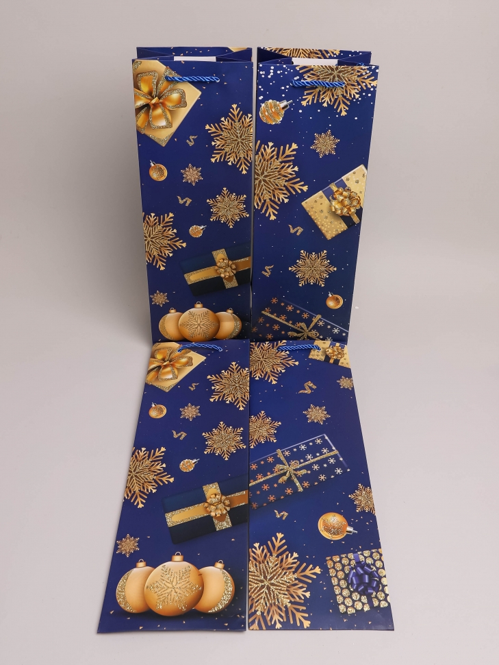 Пакет подарочный под бутылку НГ 18*35*9см синий микс