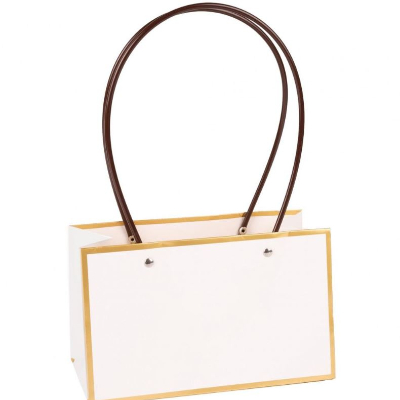 Пакет для цветов 10*13*22см белый с золотыми линиями