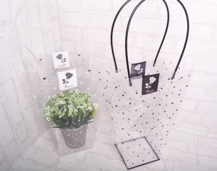 Пакет для цветов "Горошек" 26*13*35см, прозрачный, черный