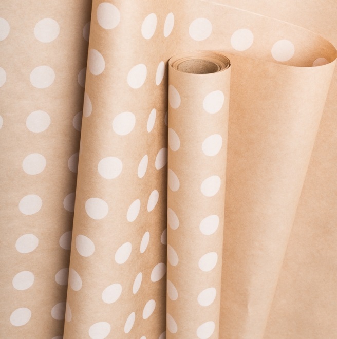 Бумага крафт 70см*10м 70г/м2 Горох18 белый