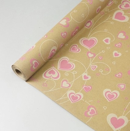 Бумага крафт 70см*10ярд Lamore малиновый/белый