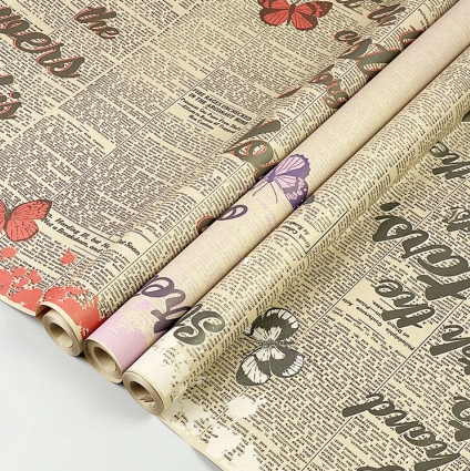 Бумага крафт 70см*10ярд Stars Flowers черный/красный