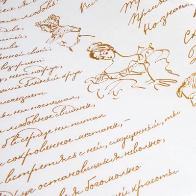 Бумага крафт белая 70см*10м 50г/м2 Пушкинские строки золотой