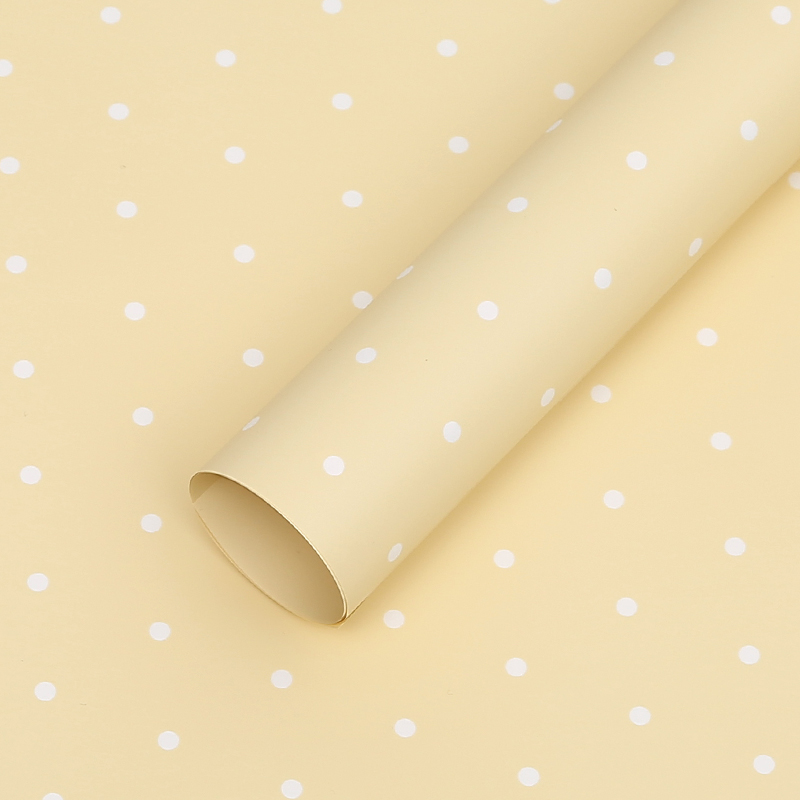 Пленка матовая 58*58см "Горошек", 20 листов, белый на желтом