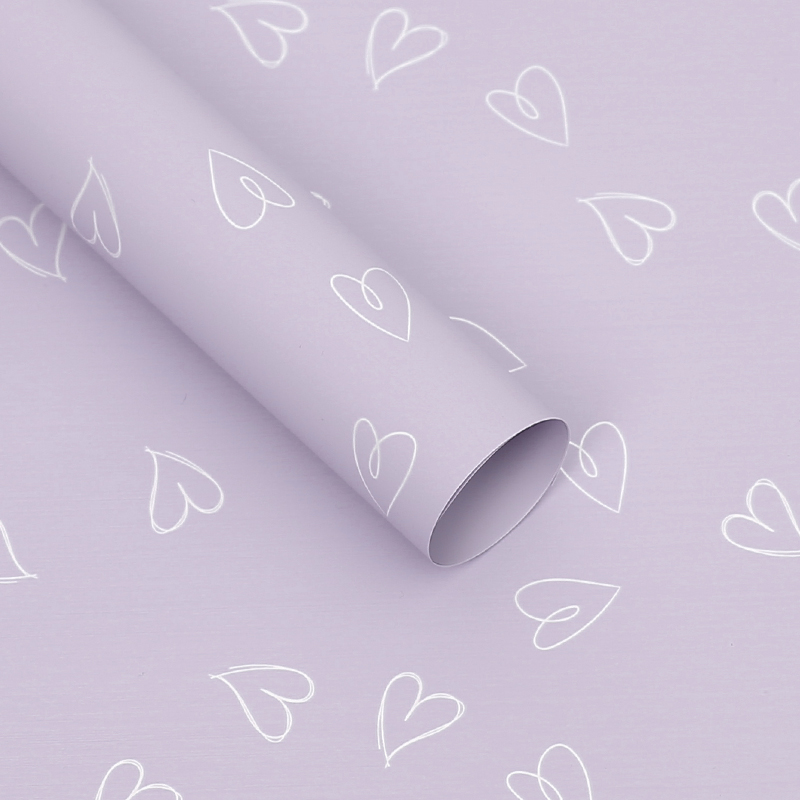 Пленка матовая 58см*10м Нежные сердца сиреневый