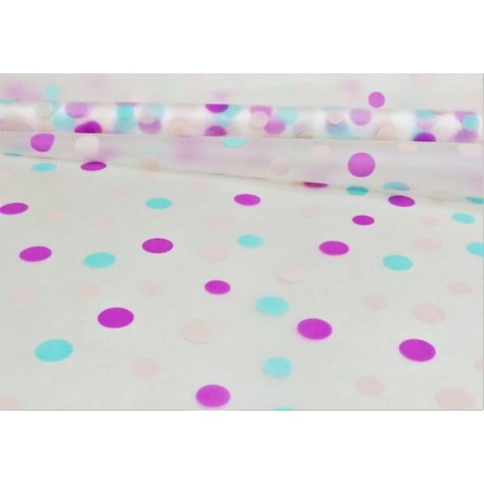 Пленка матовая 70см*08м CartaPack Трехцветный горох пудровый/бирюзовый/ярко-фиолетовый