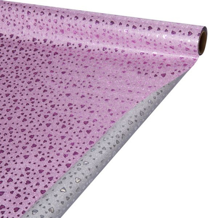Пленка блестящая, 50см*5м, Сердечки розовый