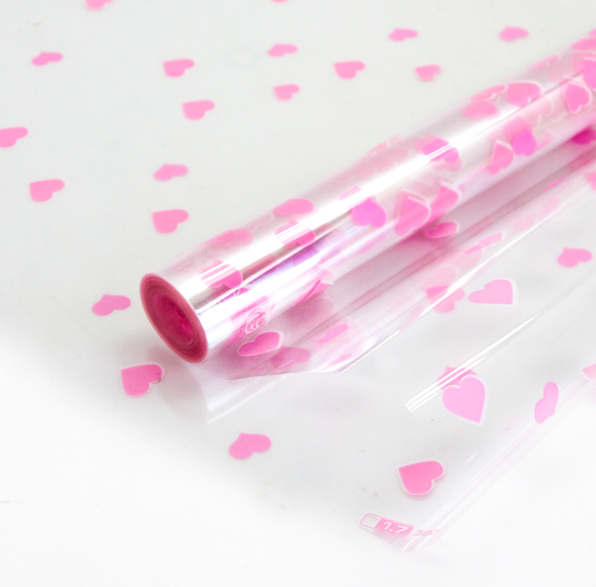 Пленка прозрачная 60см 400гр Сердечки розовый/белый