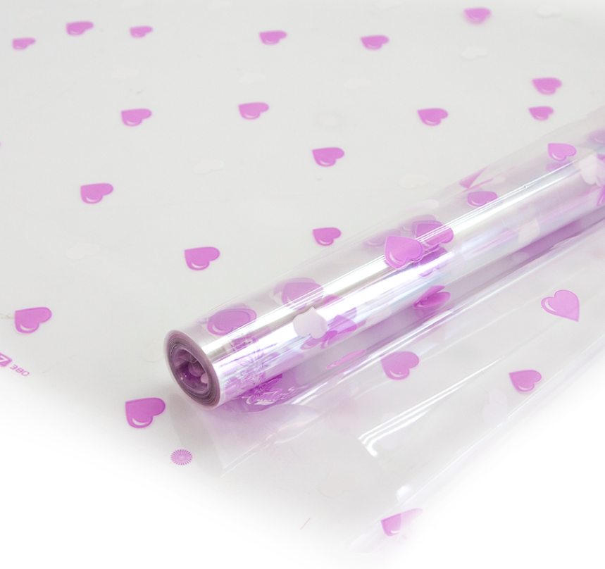 Пленка прозрачная 60см 400гр Сердечки сиреневый/белый