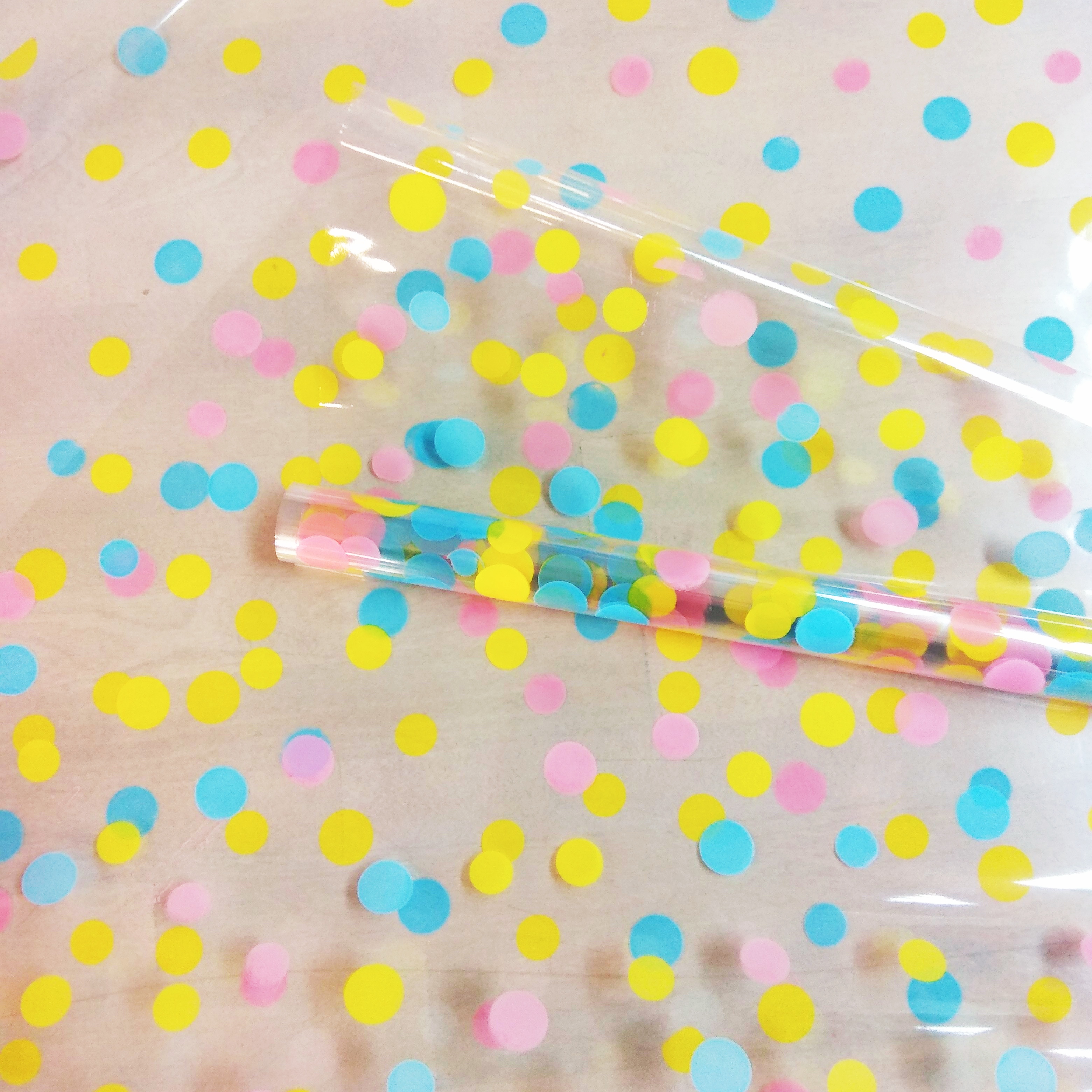 Пленка прозрачная 70см*08м Коллекция горох голубой/розовый/желтый