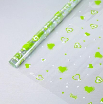 Пленка прозрачная 70см*10м Коллекция Валентинка салатовый-белый