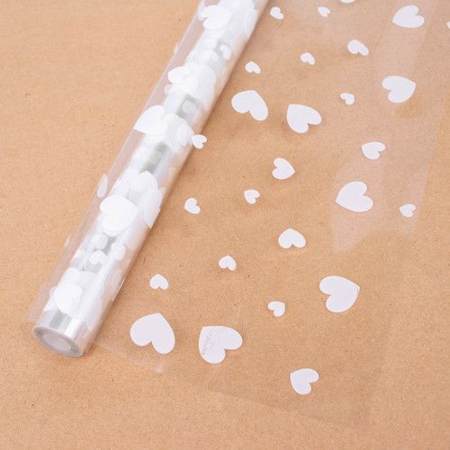 Пленка прозрачная 70см 200гр Сердечки разные белый