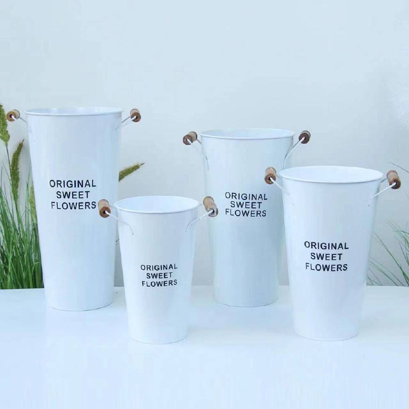 Вазон металл d15см*h25см с деревянными ручками белый