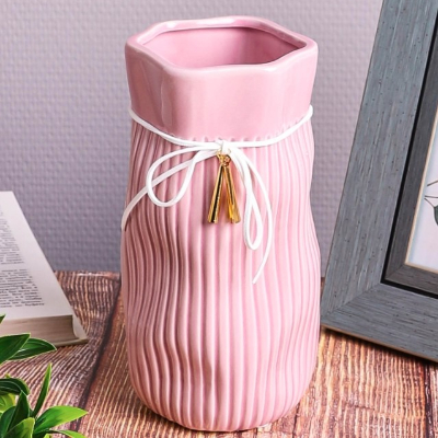Ваза декоративная d10,5*h20,5см с веревочкой керамика розовый