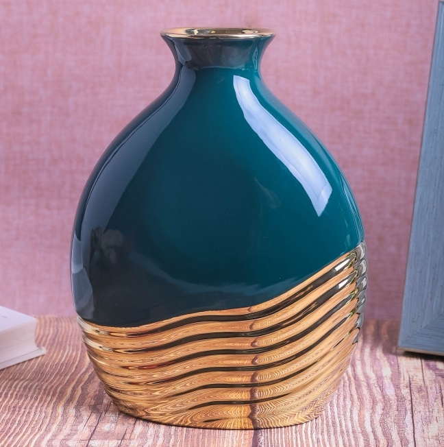 Ваза декоративная керамика d18 h24см, темно-зеленый