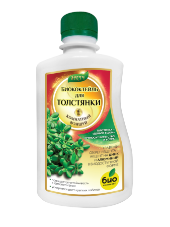 Натуральный состав биококтейля, разработан специально для бережного ухода за растением ТОЛСТЯНКА (Crassula ovata).