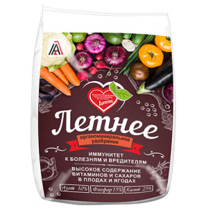 Удобрение органоминеральное Летнее – это универсальное гранулированное комплексное органоминеральное удобрение. Применяется во всех почвенно-климатических зонах в качестве подкормки летом и осенью. Весной рекомендуется использовать для основного и припосевного внесения.