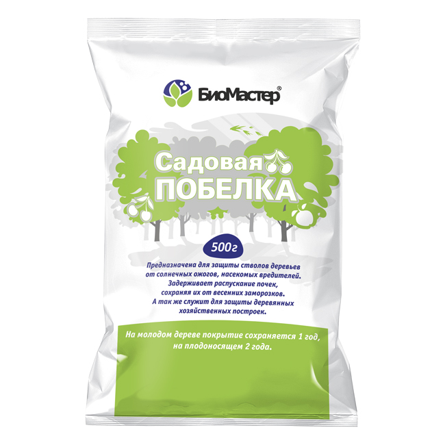 Побелка садовая БиоМастер представляет собой специальную краску, используемую для окрашивания и защиты деревьев и кустарников.