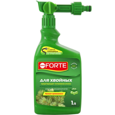 Bona Forte Удобрение для хвойных 1,5л подходит для елей, сосен, туи, пихты, можжевельника, кедра, кипариса, тиса, лиственницы. Минеральное удобрение для открытого грунта создано лабораториями Bona Forte для усиления декоративности и стимулирования роста растений.