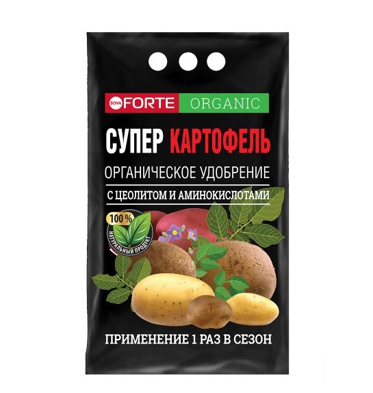 Bona Forte Удобрение органическое обогащенное цеолитом и аминокислотами СУПЕР Картофель - это высококонцентрированное быстродействующее органическое удобрение. Подходит для всех видов корнеплодов. Равномерно вносится благодаря гранулам - 1 раз в сезон.