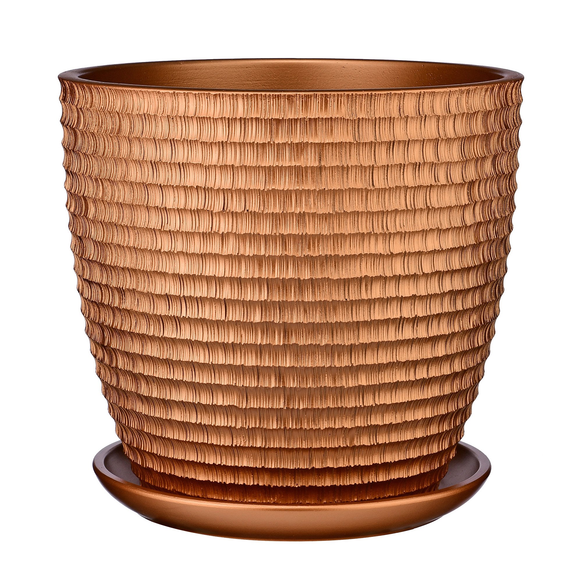 Горшок Бутон Плиссе d36 h33см 22л с поддоном бетон бронзовый