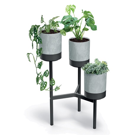 Подставка метал. h80см черный с 3-мя Кашпо Prosperplast Bloomie Stand 4л пластик бетон
