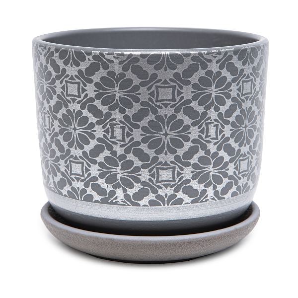Горшок Бук Гипюр d15 h12см 1,6л с поддоном керамика серый