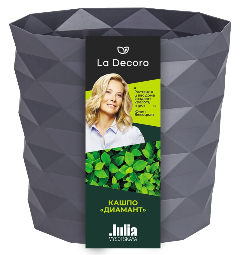Кашпо Диамант d18 h16,8см 3л с вкладкой пластик антрацитовый