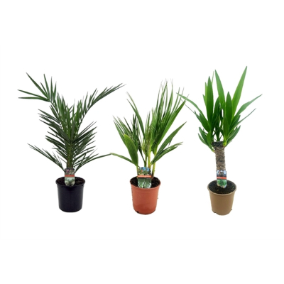 Виды.  Адонидия Мерилла, Финик канарский, Финик Робелини, Хамедорея Элеганс, Ховея Форстериана, Арека, Ливистония Ротундифолия, Кариота, Вашингтония нитеносная, Рапис, Кокос Ницифера, Цикас Революта, Хамеропс Хумилис, Хризолидокарпус лютесценс.