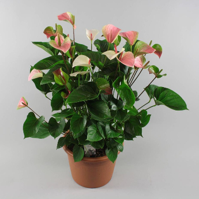 Небольшой горшок будет стимулировать цветение антуриума, горшок чуть более широкий – формирование «деток». Почва быть лёгкая, хорошо дренированная, обеспечивающая корням доступ воздуха и пропускающая воду (застой воды вызывает гниль корней), а также питательная. Желательно, чтобы в состав входил крупнозернистый песок и древесный уголь. Можно использовать субстрат для орхидей, смешанный с универсальным грунтом.