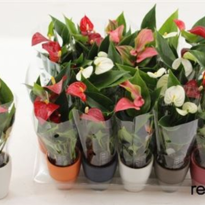 Антуриум (Anthurium) является частью семейства Ароидных, причем большая часть видов данного рода ― это эпифитные растения. Еще среди антуриумов встречаются лианы, травянистые растения и полуэпифиты. Родина антуриума – Южная и Центральная Америка. Цветок представлен початком с листом-покрывалом. Окраска: от белых и нежно-зеленых до оранжевых, красных и темно-бордовых. Форма листьев зависит от сорта, чаще встречаются листья сердцевидной формы.