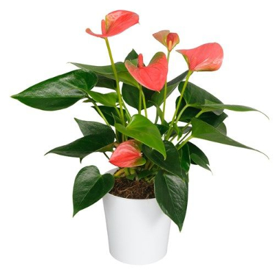 Антуриум (Anthurium) является частью семейства Ароидных, причем большая часть видов данного рода ― это эпифитные растения. Еще среди антуриумов встречаются лианы, травянистые растения и полуэпифиты. Родина антуриума – Южная и Центральная Америка. Цветок представлен початком с листом-покрывалом. Окраска: от белых и нежно-зеленых до оранжевых, красных и темно-бордовых. Форма листьев зависит от сорта, чаще встречаются листья сердцевидной формы.