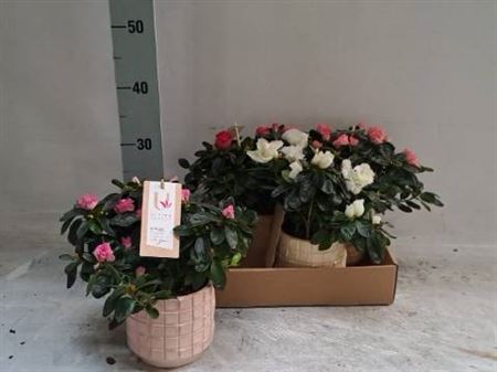 Азалия (Azalea) или комнатный рододендрон  является представителем семейства Вересковые. Комнатная азалия - компактный невысокий куст, высота которого может варьироваться от 12 до 50 см. Она отличается сильным ветвлением. Если сформировать растение в виде штамбового дерева, то его высота может превысить полметра. Секрет длительного цветения азалии заключается в обильном поливе, невысокой температуре и ярком освещении, увядшие цветки необходимо своевременно удалять.