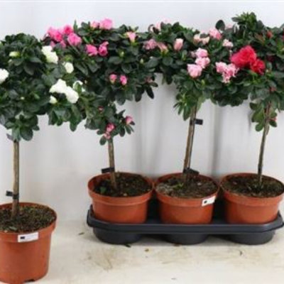 Азалия (Azalea) или комнатный рододендрон  является представителем семейства Вересковые. Комнатная азалия - компактный невысокий куст, высота которого может варьироваться от 12 до 50 см. Она отличается сильным ветвлением. Если сформировать растение в виде штамбового дерева, то его высота может превысить полметра. Секрет длительного цветения азалии заключается в обильном поливе, невысокой температуре и ярком освещении, увядшие цветки необходимо своевременно удалять.