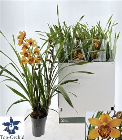 У орхидеи цимбидиум имеются яйцевидные псевдобульбы, которые являются утолщением нижней части стебля, именно в нем растение запасает воду. Килеватые и кожистые на ощупь листовые пластины, могут быть линейной либо мечевидной формы, заостренными или тупоконечными. Высота цветоноса может доходить до 150 см. Неплотное свисающие кистевидное соцветие может быть много- или малоцветковым. Величина цветков зависит от вида и сорта, они бывают и большими, и маленькими.