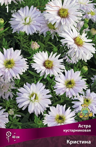 Астра кустарниковая Кристина . Астра кустарниковая: многолетнее травянистое растение с прямостоячими, сильно ветвистыми, опушенными стеблями до 50см высотой, образующими почти полушаровидные кустики. Листья сидячие, ланцетные, темно-зеленые, многочисленные. Цветет очень обильно в августе-сентябре 35-40 дней. Вид морозостоек. При хороших условиях выращивания могут покрывать большие площади. При сыром и холодном лете цветение сокращается. Размножают делением куста (чаще весной), подземными укоренившимися побегами, черенками. Кристина: высота 30 см. Цветет белыми цветками в сентябре-октябре. Месторасположение: солнечное, теплое место. Почва: предпочитает свежие, удобренные почвы, не переносит тяжелых и сухих почв! Использование: красиво смотрятся в групповых посадках на газонах, каменистых участках и горках, пригодны на срез, особенно высокорослые сорта.
