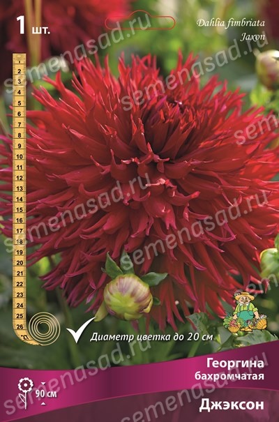 Георгина бахромчатая Джексон – эффектный крупноцветковый сорт. Густомахровые цветки с изящными узкими лепестками, элегантно свёрнутыми у основания и тонко рассечёнными на концах, выглядят удивительно роскошно. Георгины Джексон насыщенных тёмно-красных оттенков, которые наполнят ваш сад особым шармом и неповторимой привлекательностью! Цветы диаметром до 15-20 см. Куст высотой до 90 см. Период цветения продолжительный – с июля до октября. Отлично подходит для выращивания в открытом грунте и на срезку.